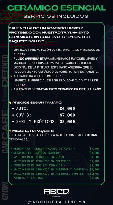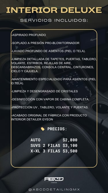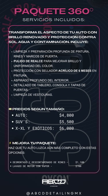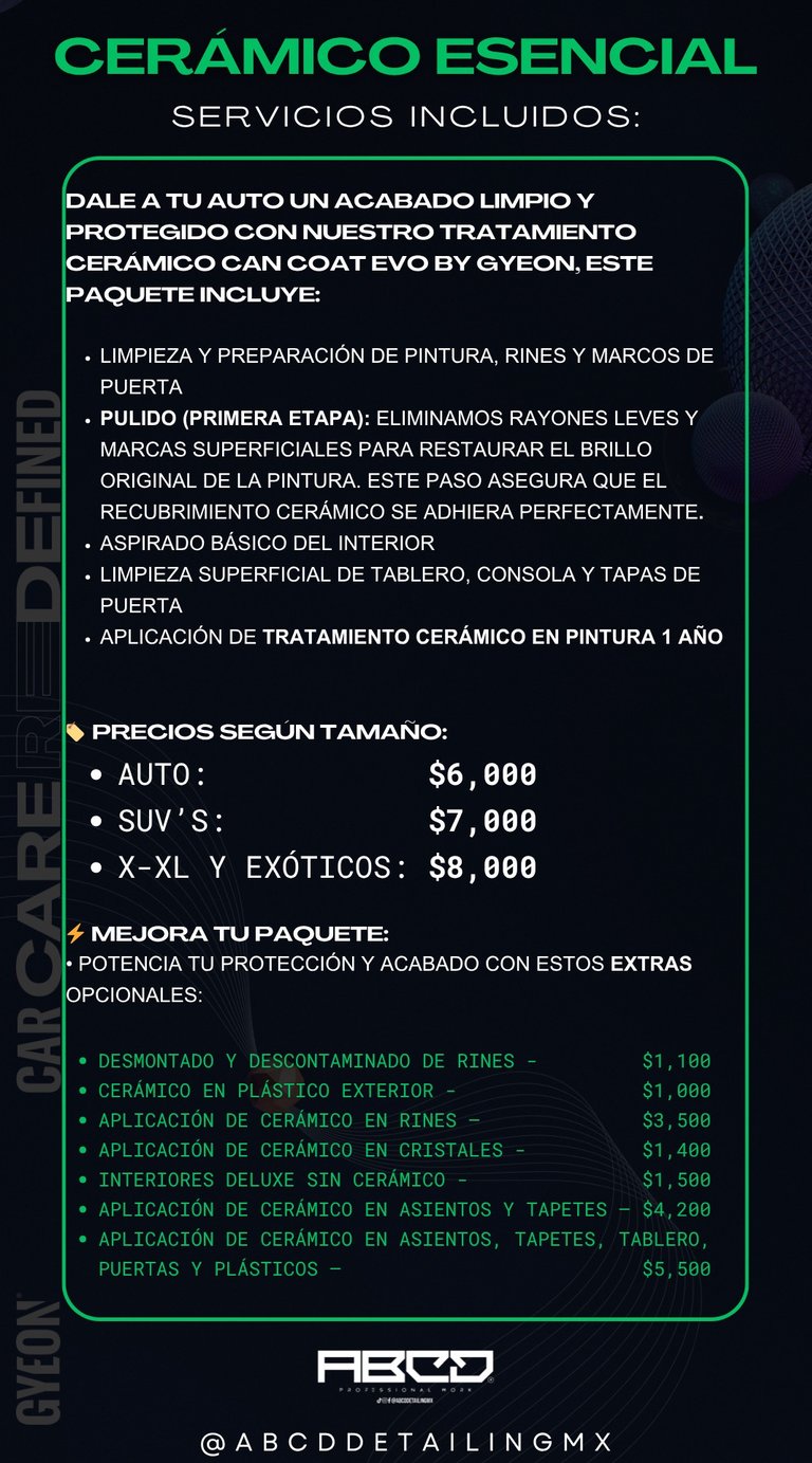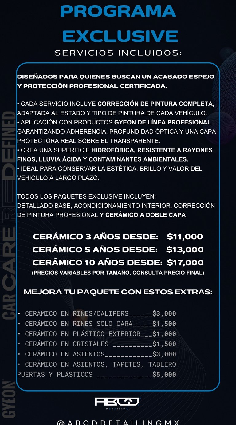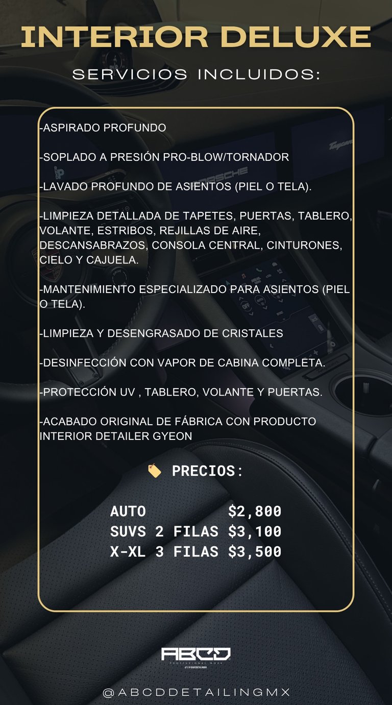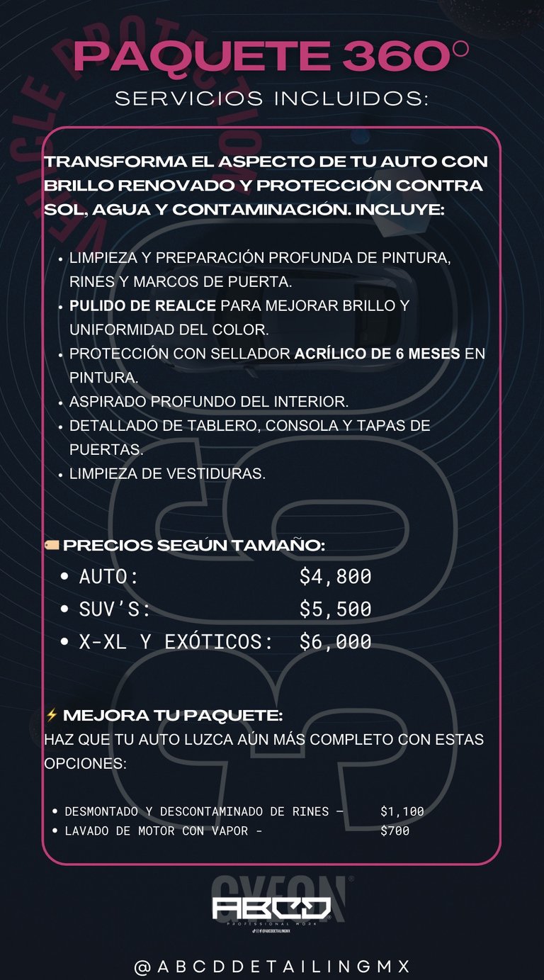 Déjame saber que necesitas y cual es la expectativa de embellecer y cuidar tu auto, para hacer algo a tu medida!