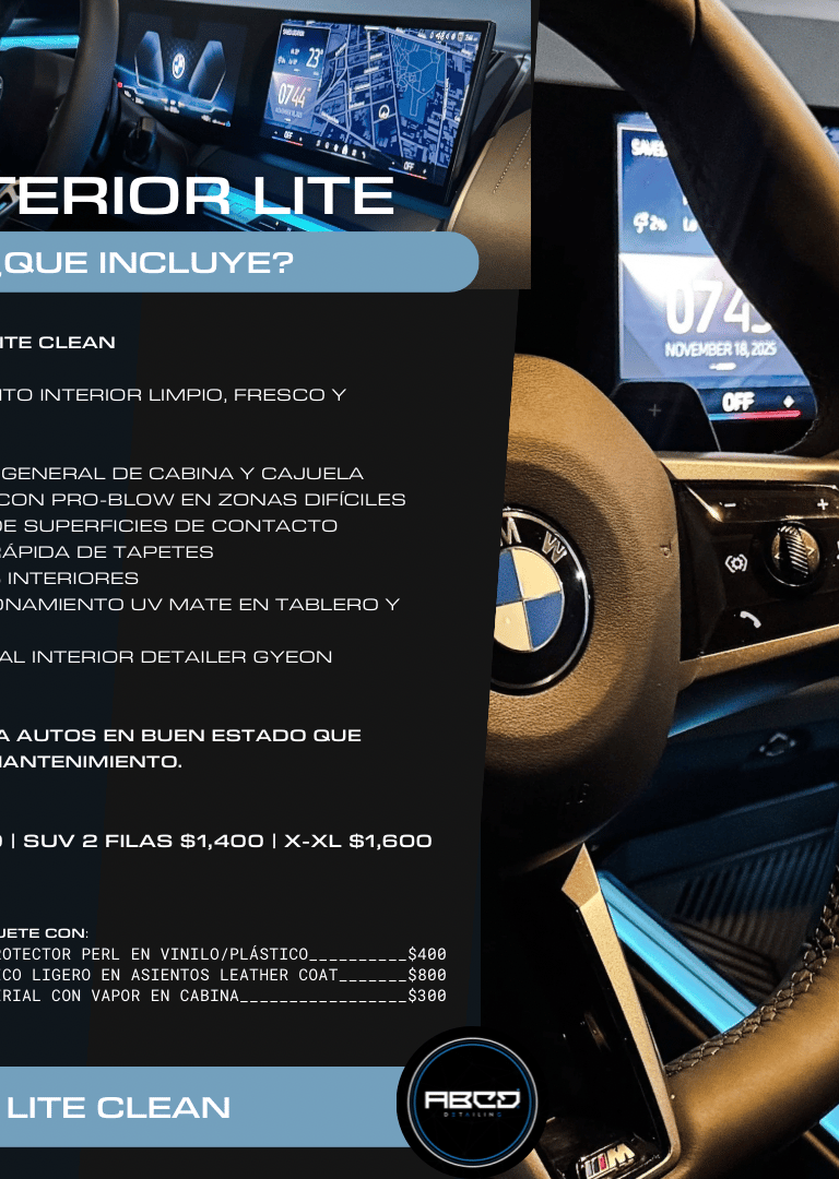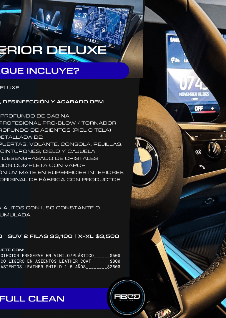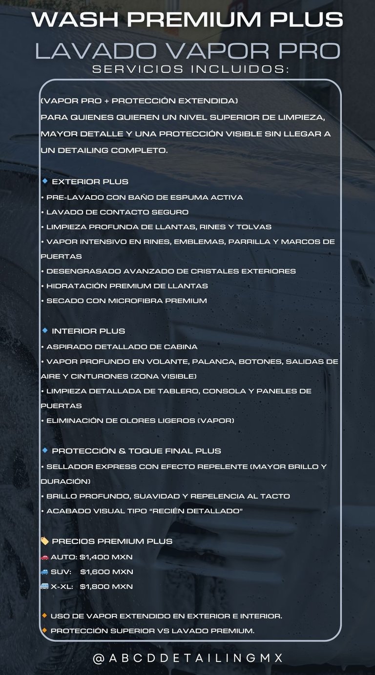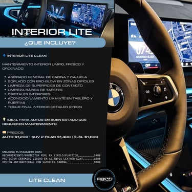 Déjame saber que necesitas y cual es la expectativa de embellecer y cuidar tu auto, para hacer algo a tu medida!