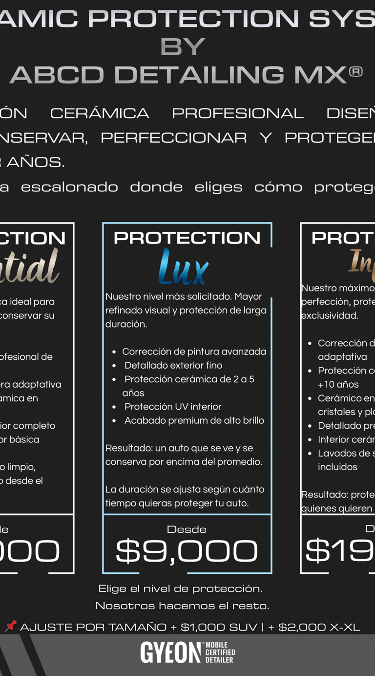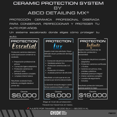 Es una capa de sacrificio adicional a la capa de transparente que trae su auto, sirve para proteger, embellecer la pintura, facilita su mantenimiento y conserva su brillo por años, se recomienda en todo tipo de vehículos nuevos y usados, Existen durezas y durabilidades de cada uno que va desde 1 año hasta +Más de 10 años.