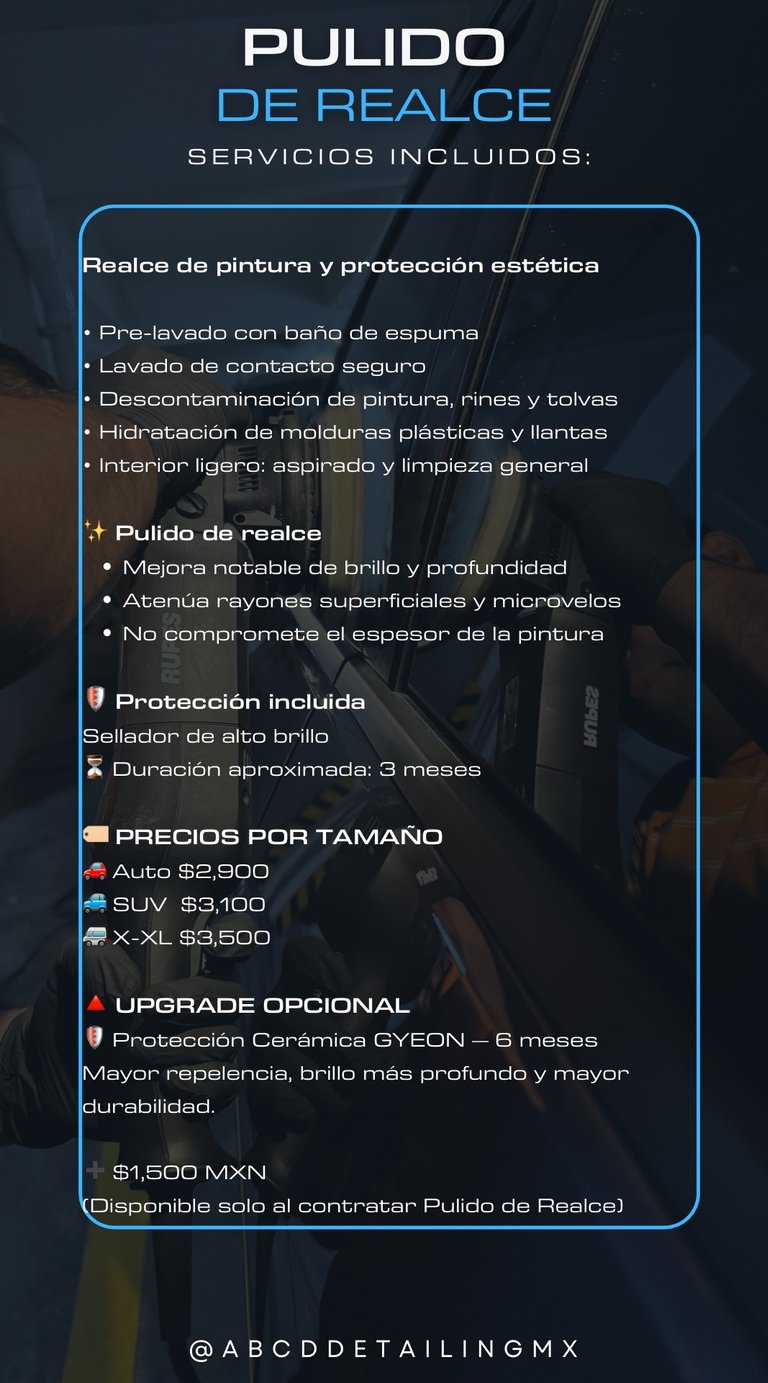 Contamos con diferentes servicios desde lavados, pulidos y encerados, corrección de pintura, tratamientos cerámicos y limpieza de interiores.